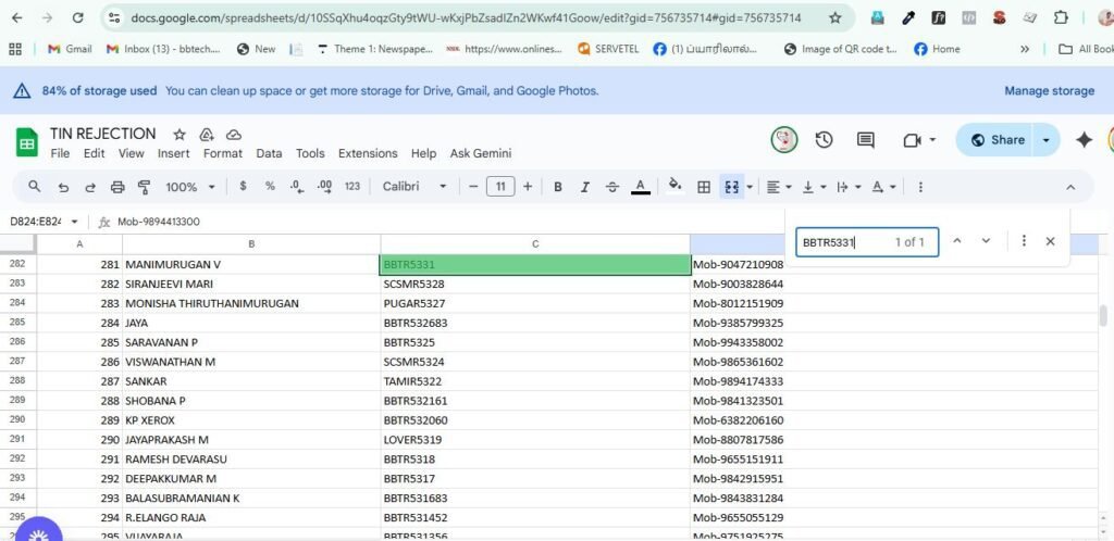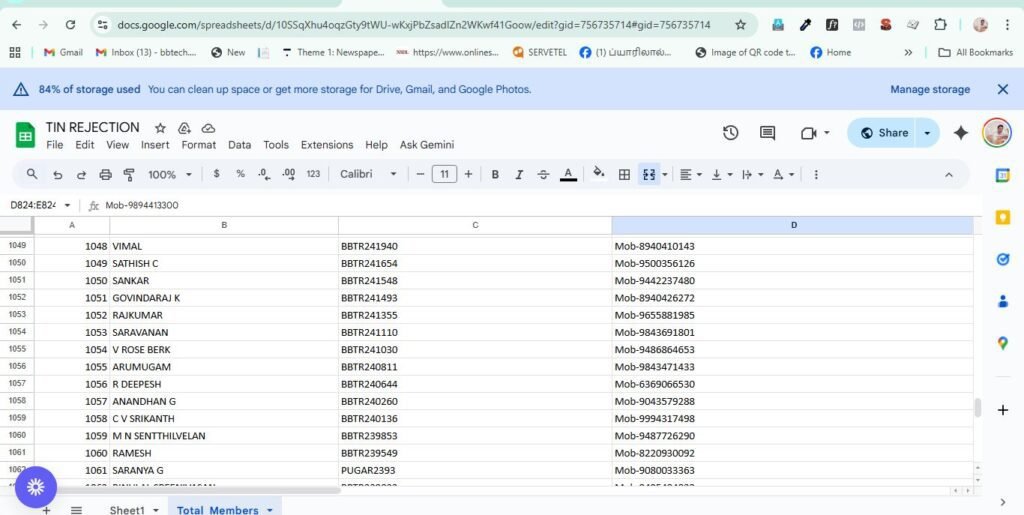 In the same sheet you can see sheet 1 and total_members. you need to click the total members – it will show all customer details like below. to find the Mobile number of the retailer the bot need to copy the batch number of the retailer from the excel shee and search here. example if the batch number is BBTR5331, the bot can search the batch number in the excel sheet and find the mobile number of the customer like in the 3rd image. and paste the Mobile number in the main excel sheet. thus you can get all details to fill the excel sheet.Now i have added a new field in the excel sheet named Type. in the Type field, if the application belongs to new , you need toy enter N, if the application belongs to CORRECTION YOU NEED TO TYPE C.